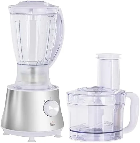 HOMCOM 2 in 1 Blender, Food Processor Combo for Chopping, Slicing, Shredding, Mincing, Pureeing for Vegetable, Meat and Nuts, 500W 5-Cup Bowl, 1.5L Blender Jug, 3 Blades
