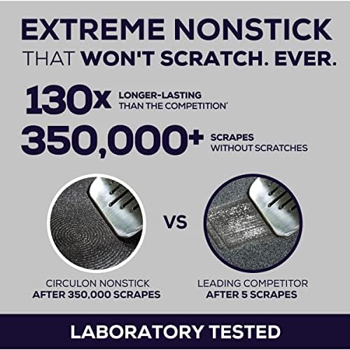 EXTREME NONSTICK: Engineered not to scratch, our nonstick has been laboratory tested to last 130x longer than the competition – that’s more than 350,000 scrapes without scratching.