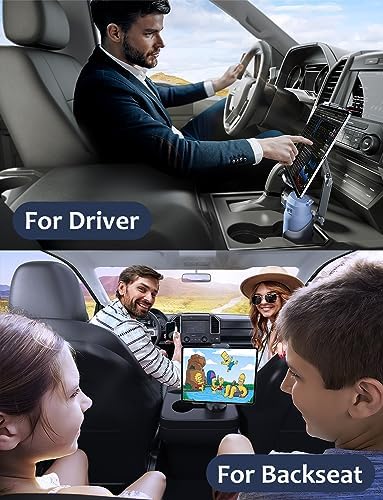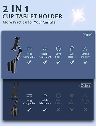 【Wide Compatible】Our cup holder is suitable for all 3-4.3-inch round and square car cup holder, the tablet holder supports iPad up to 12.9 inches and all devices ranging from 4 to 12.9 inches, including cell phones and tablet. With our wide compatibility and easy-to-use cup holder and tablet holder combo, traveling becomes more convenient and safer