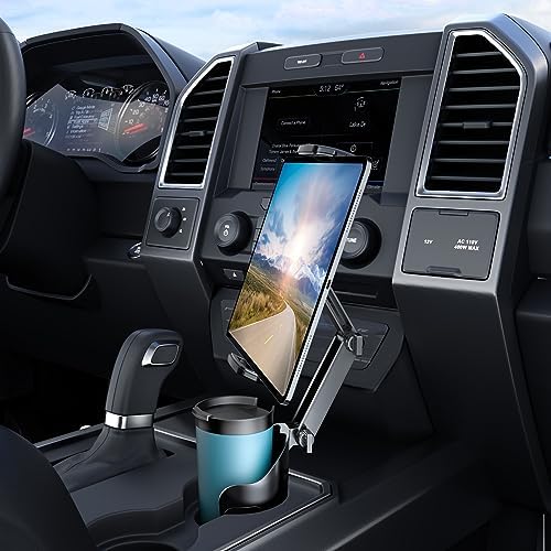 Cup Holder Tablet Mount for iPad: Car Cup Holder Tablet Stand with Adjustable Arm for Truck Compatible with iPad Pro Air Mini | Galaxy Tab | Kindle Fire HD or Other 4.7-12.9″ Devices