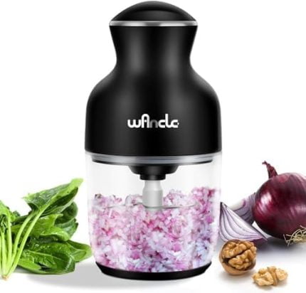【Easy Use & Powerful】: Product size: 3.94” * 4.53”. Just manually put food or ingredients into the 60W powerful vegetable chopper, lock the lid and chop food quickly with one button, garlic chopper with 4 stainless steel 304 sharp blades, only needs 20s can automatic and evenly chop/mince/blend a wide variety of foods, saving you time and freeing your hands.
