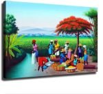 Installation Instructions: This Haitian Art Mangrove Haitian Woman Selling Fruit Poster is top brand high quality canvas. Our posters are available in two options, unframed and framed, if you choose framed the poster will be wrapped neatly around the wooden frame, if you choose unframed you can use stands, clips, thumbtacks or pins.