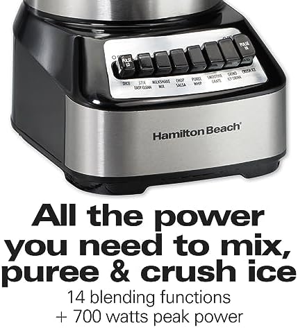Hamilton Beach Wave Crusher Blender For Shakes and Smoothies With 40 Oz Glass Jar and 14 Functions, Ice Sabre Blades & 700 Watts for Consistently Smooth Results, Black + Stainless Steel (54221)