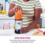 Included: (1) 250W motor base, (1) cross-blade, (1) tall cup, (1) short cup, (1) party mug, (2) lip rings, (2) Stay-Fresh resealable lids, (1) to-go lid and 10-second recipe guide.