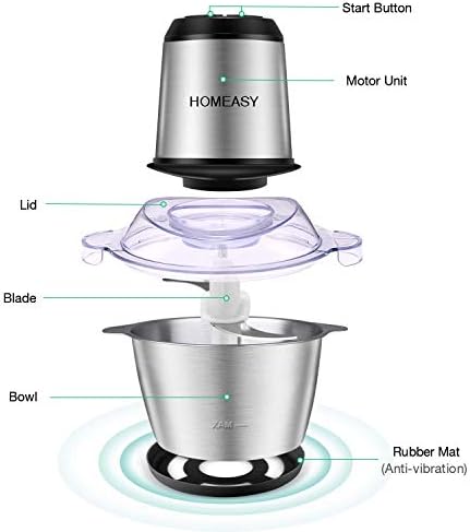 ✔Easy To Clean & User-friendly Design – The unit can be disassembled and the accessories are easier to clean. The chopper comes with a non-slip mat, you can put the bowl on the mat.