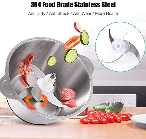 HOMESAY food chopper is equipped with a stainless steel bowl and 2L capacity. Compared with glass bowls, it is stronger, healthier and shock-proof, ensuring durability. The joint connection between blade and the main body is made of stainless steel unlike other plastic one thus the blade is not easy to break off.