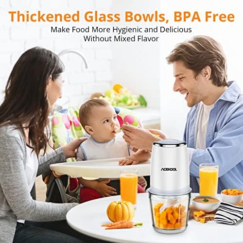 Food Chopper Express Chop: With the Acekool small food processors make quick work of everyday chopping, grinding, pureeing, and whisking! Chop fruits, vegetables, meat, bread, nuts, garlic, onion, mix up relishes and blend up dips and sauces. Make homemade nut butter, or grind spices and grains