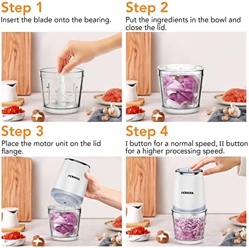 Safe & Practical: BPA-free & overheating protection. This vegetable chopper electric comes with a 2.5-cup thick glass bowl with large capacity more durable healthier and more shockproof. The built-in mute bearing can effectively reduce the noise of high-speed motors, creating a quiet cooking environment
