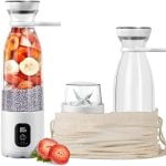 ERGONOMIC & COMPACT DESIGN : (i) Drink from the mouth of the container without having to use a straw, Feed on the bottom of the container with wider opening is much easier than other USB blenders (ii) You can take the blender base off so that you can use it like a compact and exquisite bottle and the motor base comes with a blade safety protective cover. (iii)Fits in your purse or bag easily, great for traveling&A great addition to your gym bag