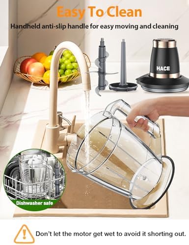 【8-Cup Large Mixing Bowl】HACE food processor comes with a roomy 8-cup mixing bowl that's perfect for various cooking tasks. Made from food-grade materials, this electric food processor keep your food stay safe and clean.The transparent design lets you keep an eye on the blending process. Additionally, our electric food chopper is dishwasher-safe for easy cleanup. It's a handy addition to your kitchen with ample space and effortless cleaning.