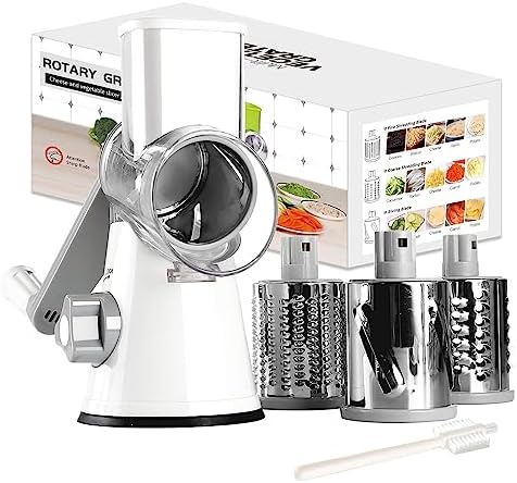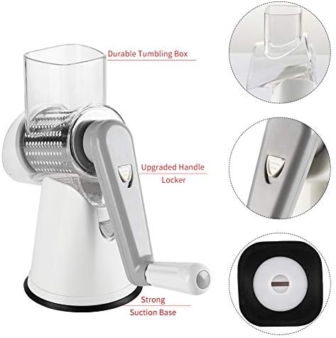 Rotary Cheese Grater Cheese Shredder – Round Mandoline Slicer Vegetable Slicer Walnuts Grinder with Strong-Hold Suction Cup Base and Cleaning Brush