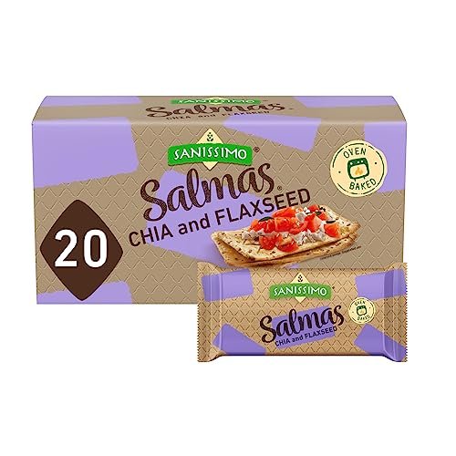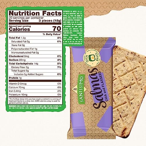 Sanissimo Salmas Chia & Flaxseed, 20 Packs of 3 Crackers, Oven Baked Corn Crackers, Gluten Free, Non-GMO, Kosher Certified