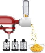 Time-Saving: The cheese grate attachments for kitchenaid, from cheeses to fruits and veggies, it cuts your time spent on prep in half or more. You can slice vegetables, fruits, nuts to make delicious and healthy salad, even coleslaw, soups, tacos, pizza toppings, desserts, and many more dishes.
