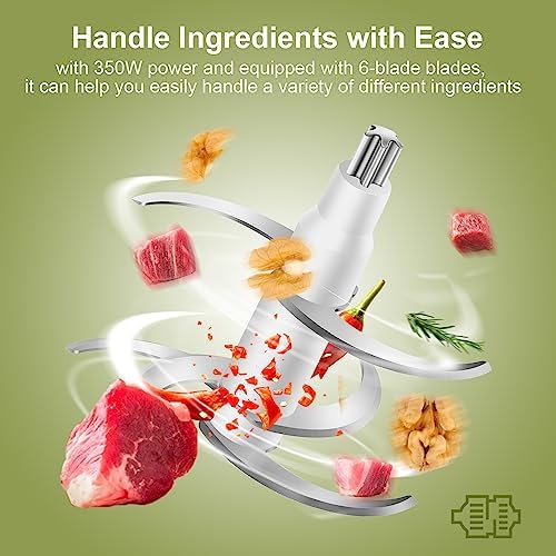 Equipped with a 350W motor and a sharp 6-blade blade, Wancle food chopper can quickly and evenly chop meat, vegetables and other ingredients.