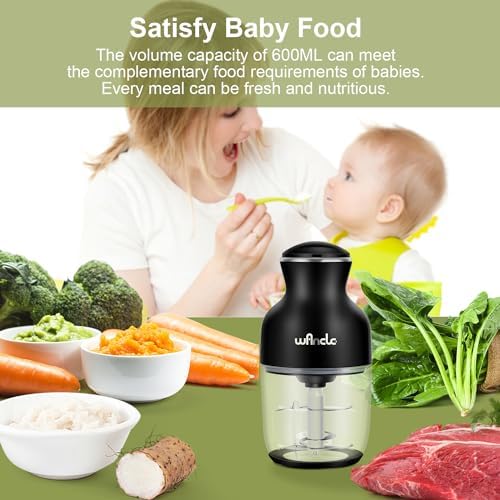 Wancle Food Processors, Multi-Functional Food Chopper, Meat Grinder & Veggie Chopper, Quiet, 600ML Glass Bowl Baby Food Maker, One-Touch Operation, 350W, Three-layer Blade(Black)